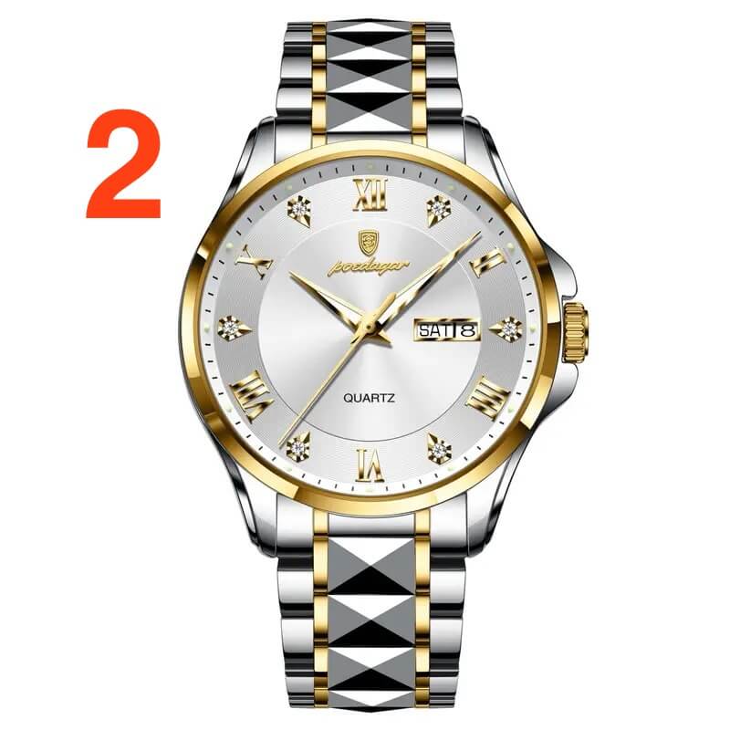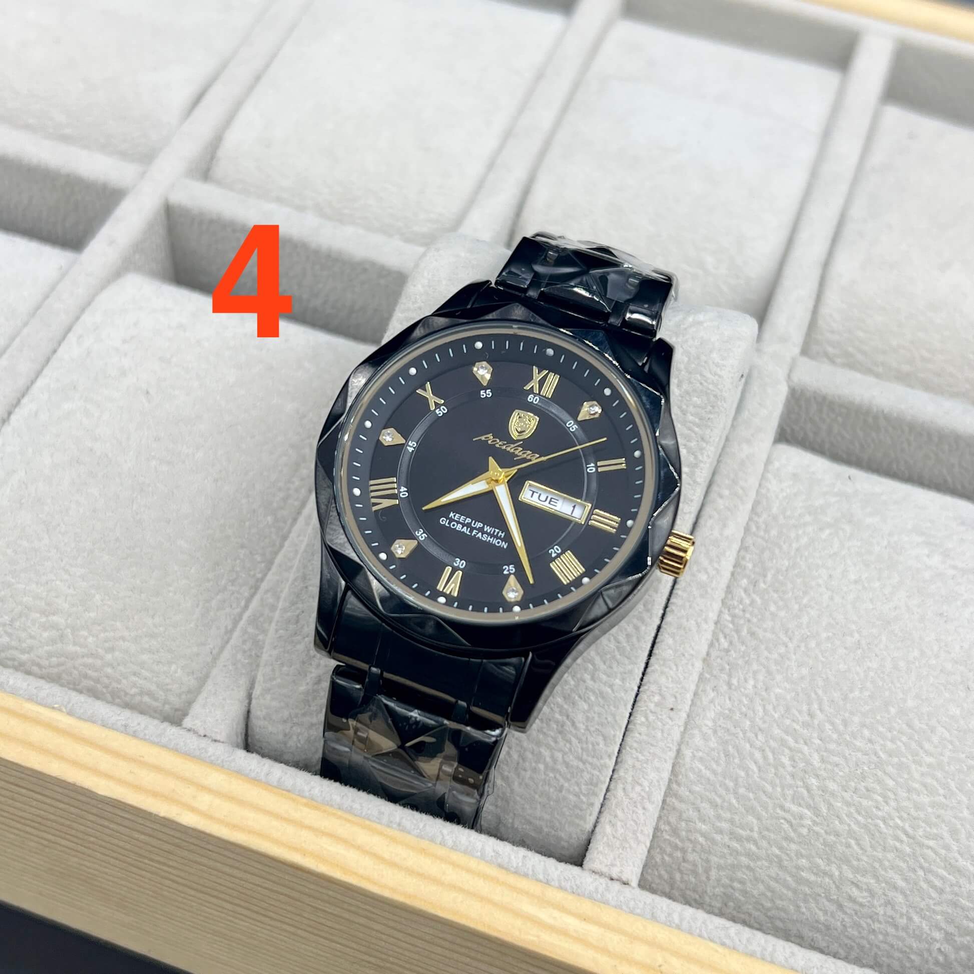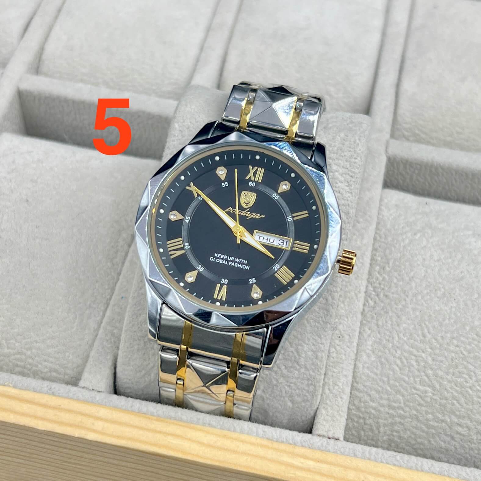 تتوفر ساعة Poedagar بعدة ألوان أنيقة لتجد ما يناسب شخصيتك تماماً — سواء كنت تفضل الكلاسيكية باللون الفضي أو الجريئة بالذهبي والأسود.